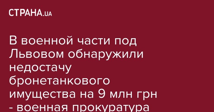 В одной из воинских частей во Львовской области обнаружили недостачу бронетанкового имущества на 8,9 млн гривен. Об этом сообщила пресс-служба военной прокуратуры западного региона области.