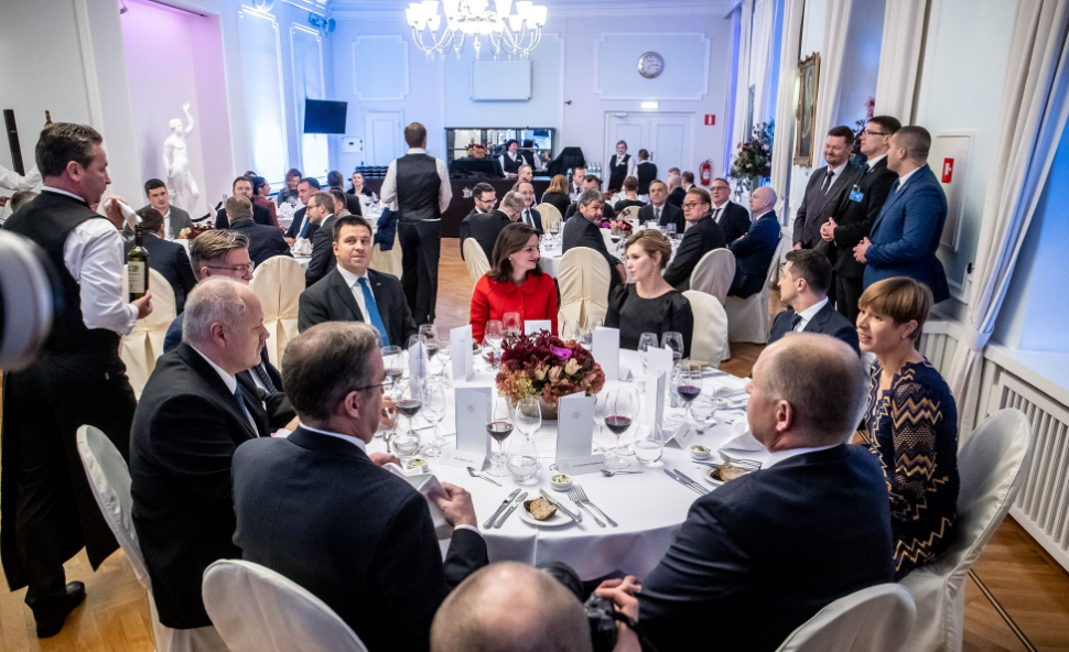 Вечером во вторник, 26 ноября, во время визита в Эстонию президент Украины Владимир Зеленский в Национальной опере "Эстония" побывал на торжественном ужине с президентом Эстонии Керсти Кальюлайд и ее супругом Рене Максимовским. Фото с ужина публикует издание Postimees.
