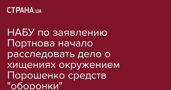 НАБУ по заявлению Портнова начало расследовать дело о хищениях окружением Порошенко средств "оборонки"