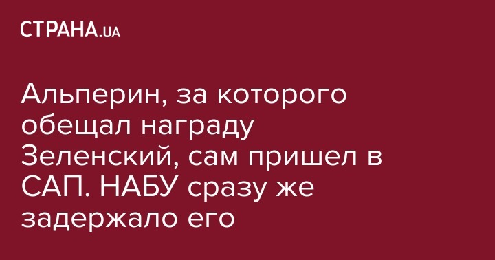 Альперин, за которого обещал награду Зеленский, сам пришел в САП. НАБУ сразу же задержало его