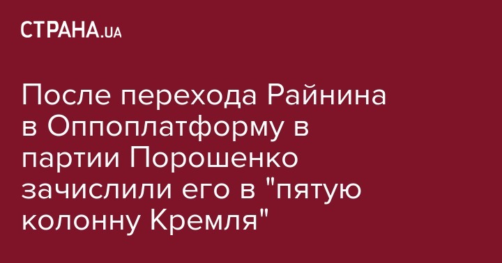 Ее соратница по фракции Ирина Фриз причислила Райнина к "пятой колоне Кремля". "Почему бывший глава Администрации президента Порошенко возглавил харьковский ОПЗЖ? Потому что "пятая колонна" Кремля работает. И свои кадры они тщательно хранили и продвигали для дискредитации деятельности команды пятого президента, саботажа принятых решений, манипулятивных сливов в СМИ под выгодным им углом", - написала она.