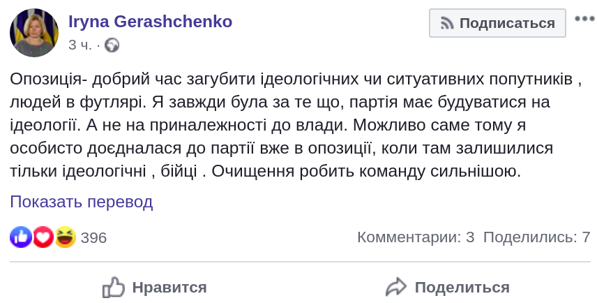 Свое мнение Геращенко описала в своем посте в Facebook