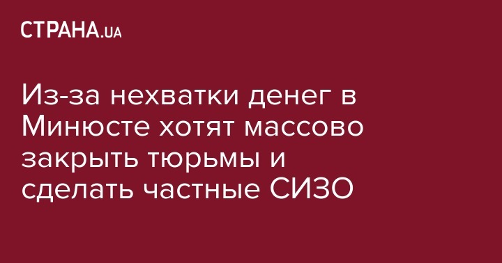 В связи с дефицитом финансирования Министерство юстиции планирует массово закрыть тюрьмы и сократить персонал, а также разрешить частные СИЗО. Как сообщает Укринформ, об этом в Киеве на презентации запланированных на 2019-2020 гг. изменений "To do list" заявил министр юстиции Денис Малюська.