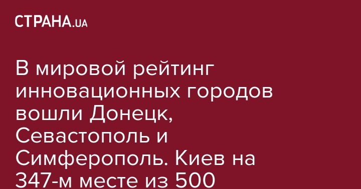 В число самых инновационных городов также вошли Донецк - 489, Севастополь - 490 и Симферополь - 494 (все три последних города указаны как украинские - Ред.).
