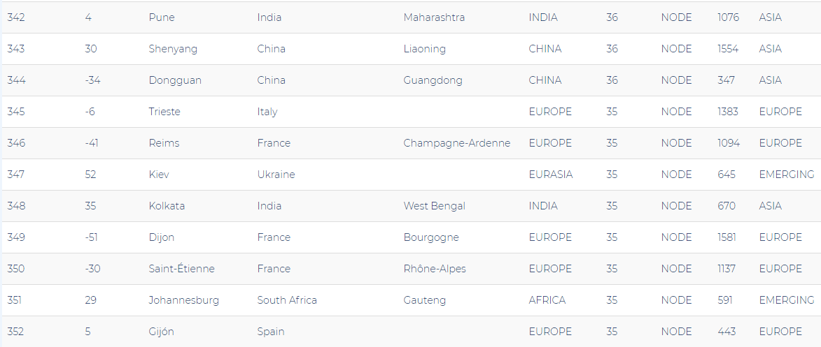 В 2019 году он охватил свыше 500 мировых городов. Рейтинг позволяет определить потенциал в области создания, внедрения и трансляции инновационных идей.