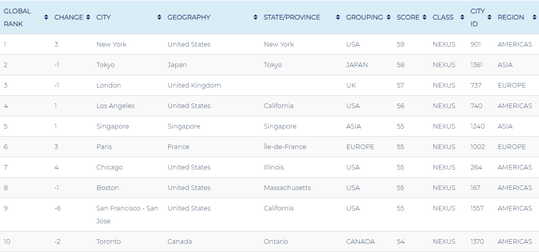 Данные опубликованы на сайте рейтинга, где первые три места занимают Нью-Йорк, Токио и Лондон.