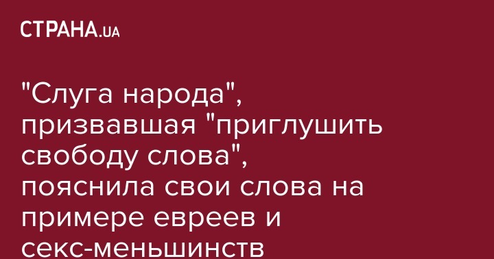 "Слуга народа", призвавшая "приглушить свободу слова", пояснила свои слова на примере евреев и секс-меньшинств