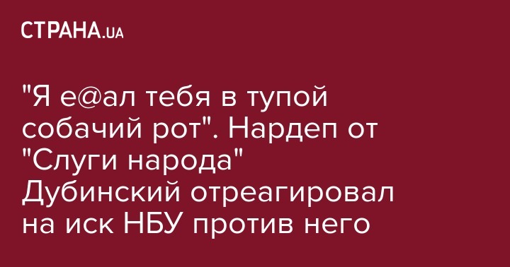 "Я е@ал тебя в тупой собачий рот". Нардеп от "Слуги народа" Дубинский отреагировал на иск НБУ против него
