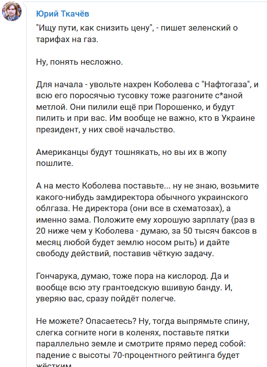 Журналист Юрий Ткачев видит корень всех бед в старых лицах при новой власти и считает, что нужно уволить все руководство "Нафтогаза".