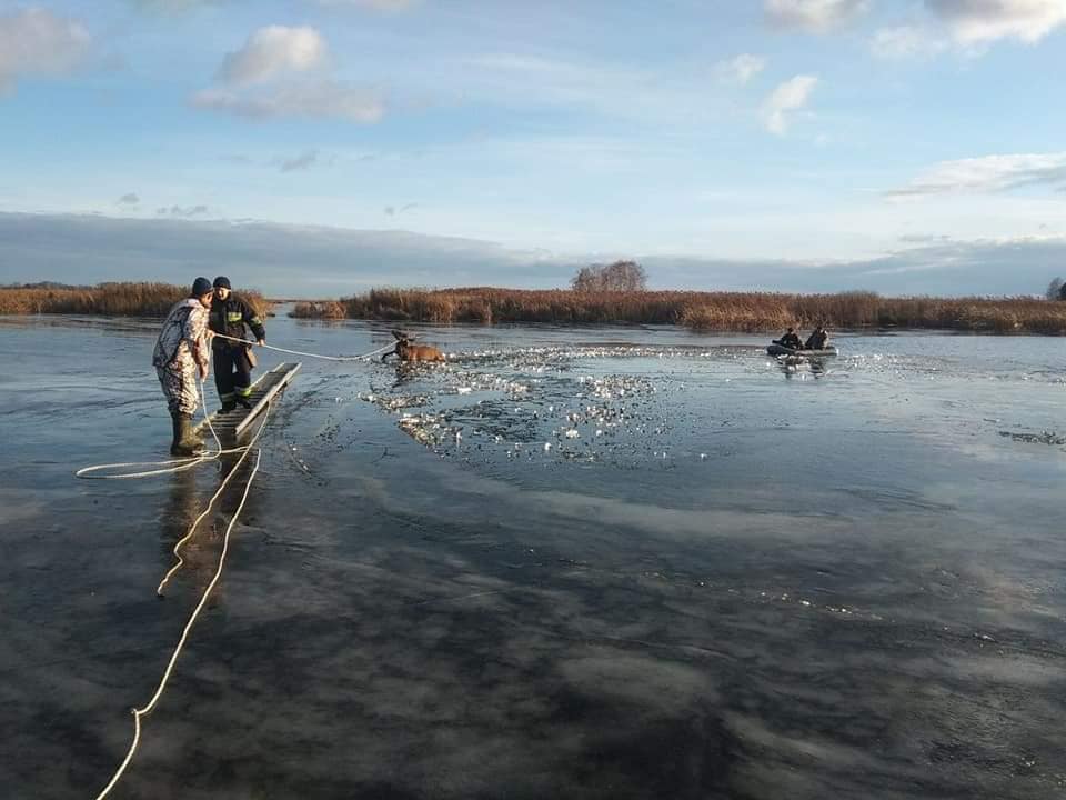Бойцы ГСЧС под Киевом спасли оленя из ледового плена. Фото и видео