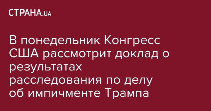 Сегодня, 1 декабря, стало известно, что комитет по разведке Палаты представителей американского Конгресса 2 декабря начнет рассматривать, подготовленный доклад по итогам расследования в рамках процесса импичмента президента США Трампа. Об этом сообщает издание Politico.