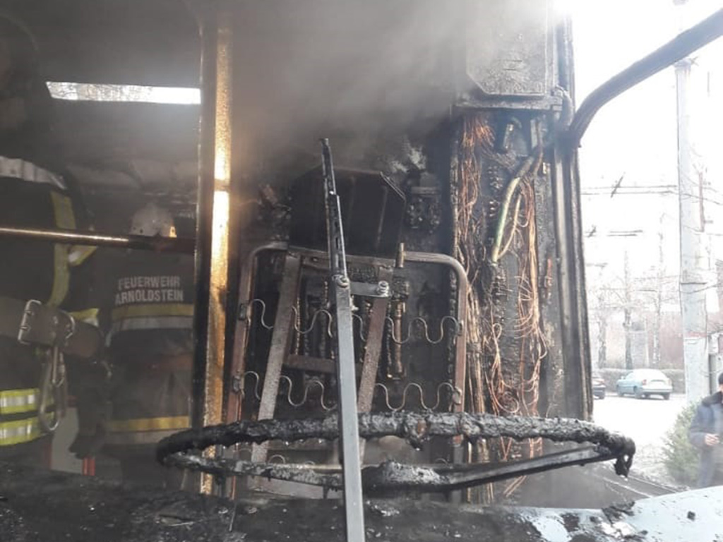 В Кривом Роге сгорел пассажирский троллейбус. Фото