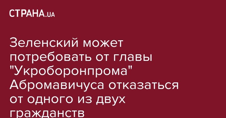 Президент Украины Владимир Зеленский не исключает, что потребует от генерального директора государственного концерна "Укроборонпром" Айвараса Абромавичуса сложить одно из двух имеющихся у него гражданств.