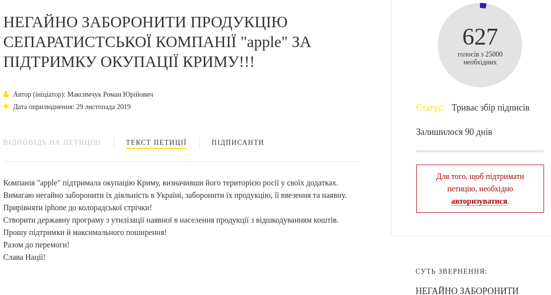 Сейчас петицию подписали 627 человек, для сбора необхомых 25 000 подписей у автора есть еще 90 дней.