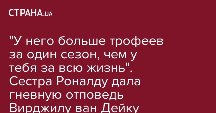 Дорогой Вирджил, в течение одного сезона Криштиану взял больше трофеев, чем ты добился за свою карьеру. Впечатляет, не правда ли? Когда у тебя будут в руках трофеи, которые действительно считаются, тогда, возможно, ты сможешь оказаться за одним столом с Криштиану. Для меня он остается самым лучшим", - написала Авейру и выложила фото феноменального гола своего брата, который тот положил Ювентусу в Лиге чемпионов-2017/2018.