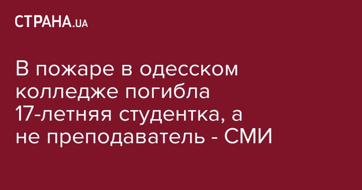 Во время пожара, который произошел сегодня в Одесском колледже экономики, права и гостинично-ресторанного бизнес, скончалась 17-летняя студентка, а не преподаватель, как сообщалось ранее. Об этом пишет "Думская".