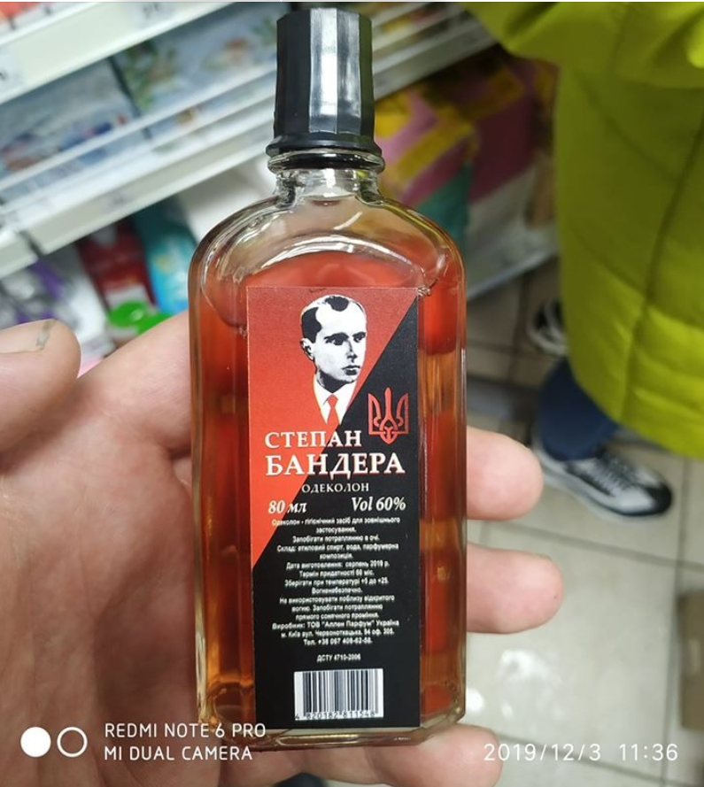 В Сумской области в одном из магазинов сфотографировали одеколон "Степан Бандера", названного по имени одного из организаторов УПА. Фото опубликовал пользователь Дмитрий Спаский.