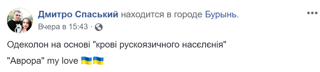 "Одеколон на основе "крові рускоязичного насєлєнія"", - говорится в описании к фото.