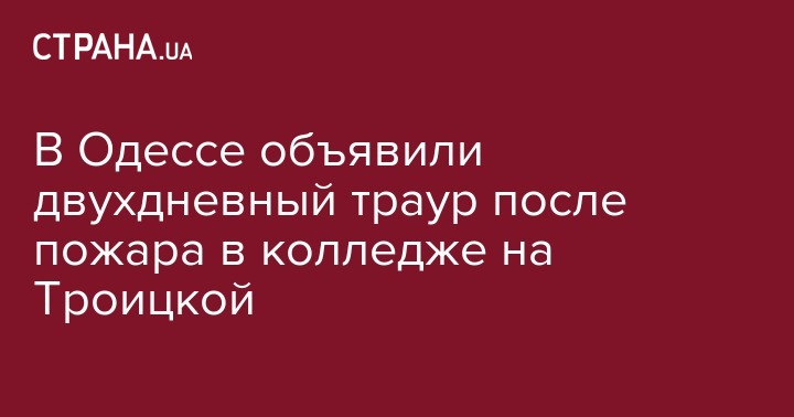 В связи с пожаром в здании памятника архитектуры на улице Троицкой в Одессе, где находился колледж экономики, права и гостинично-ресторанного бизнеса, в городе объявлен двухдневный траур. Об этом написал в своем Facebook мэр Одессы Геннадий Труханов.