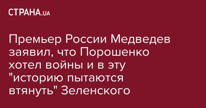 Экс-президент Украины Петр Порошенко не хотел мира и в эту же историю пытаются втянуть нынешнего главу страны Владимира Зеленского. Об этом заявил премьер-министр России Дмитрий Медведев, видео с котором разместил у себя в Telegram журналист Владимир Соловьев.