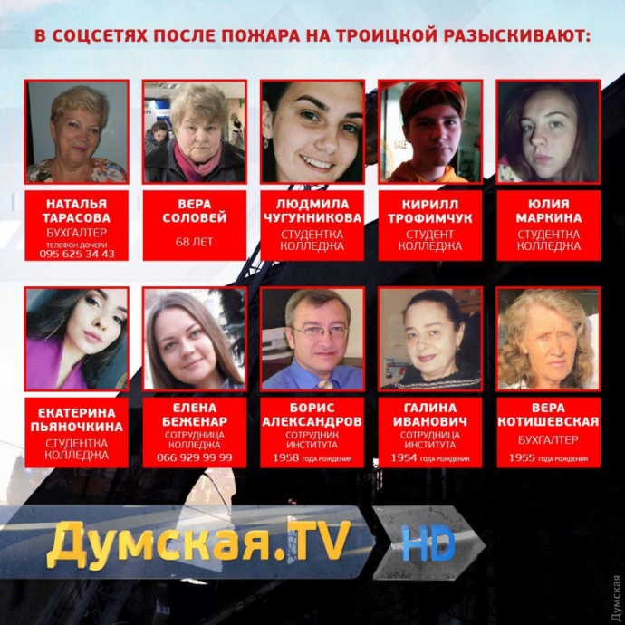 Появился список пропавших во время пожара в Одесском колледже экономики, права и отельно-ресторанного бизнеса.