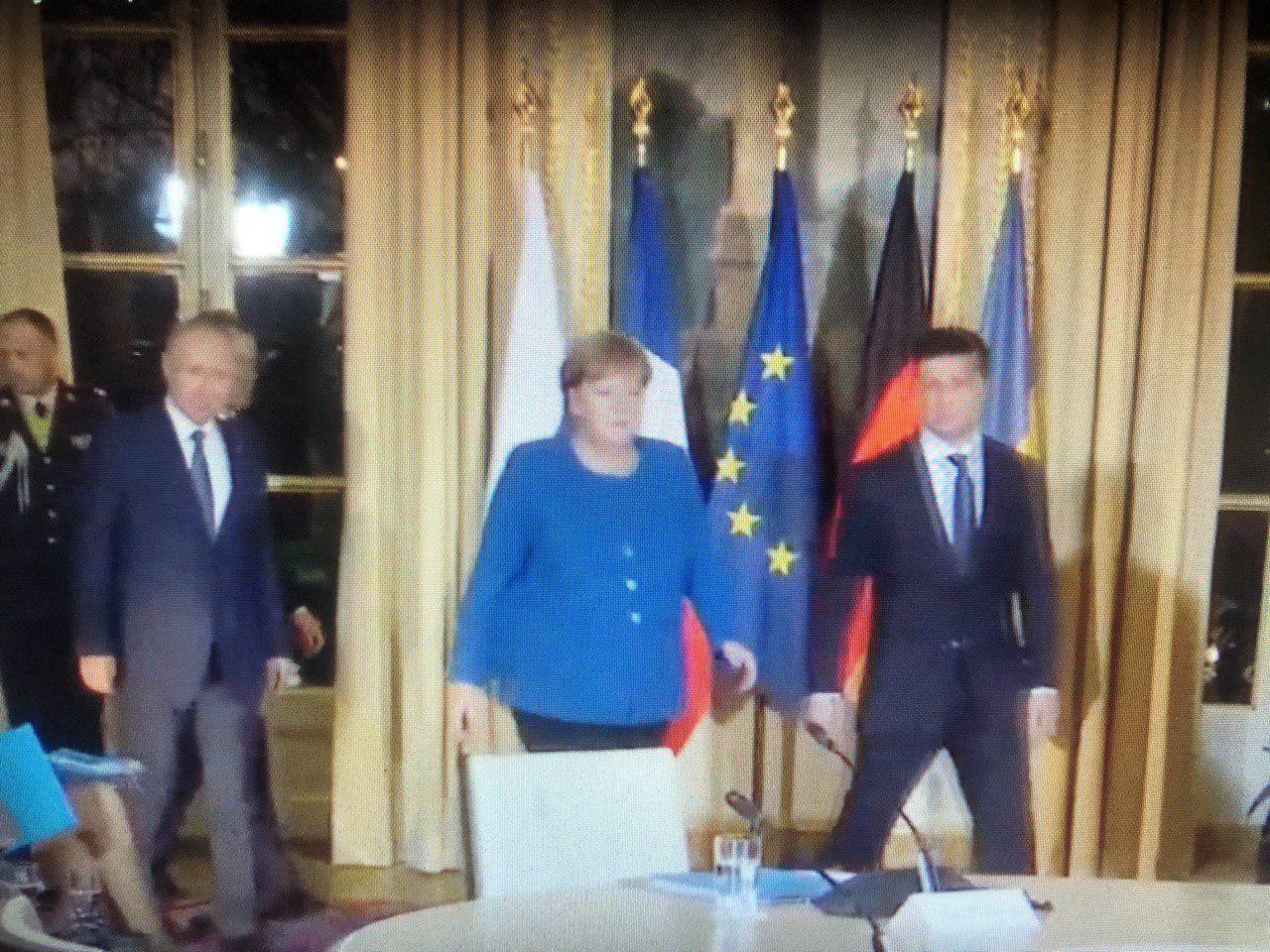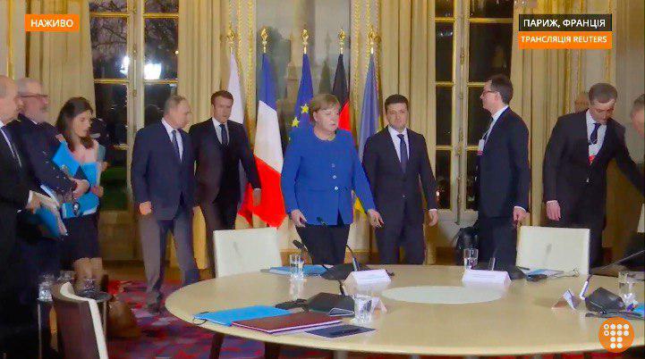 Общая встреча началась в 18:20 по киевскому времени с задержкой на 1 час 20 минут. До этого Зеленский провел беседу с президентом Франции Эммануэлем Макроном, затем с канцлером ФРГ Ангелой Меркель. После саммита "четверки", на которую отведено порядка трех часов, ожидается встреча Зеленского с Путиным, сообщили в Офисе президента Украины.