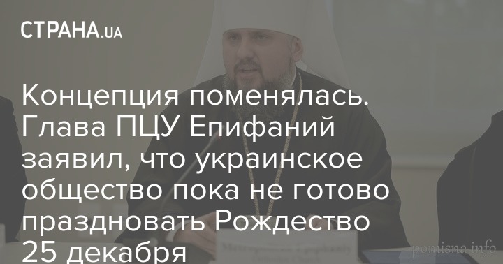 Глава ПЦУ Епифаний, ранее разрешивший своей пастве отмечать Рождество 25 декабря, заявил, что для переноса празднования Рождества с 7 января на 25 декабря в Украине сейчас не время. Об этом он заявил в интервью BBC.