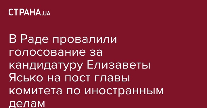 Кандидатура нардепа от "Слуги народа" Елизаветы Ясько на должность главы комитета по иностранным делам провалилась. Во время голосования парламентарии дали всего 186 голосов за. Стоит отметить, что это, пожалуй, рекордный провал согласованного Зе-командой решения.