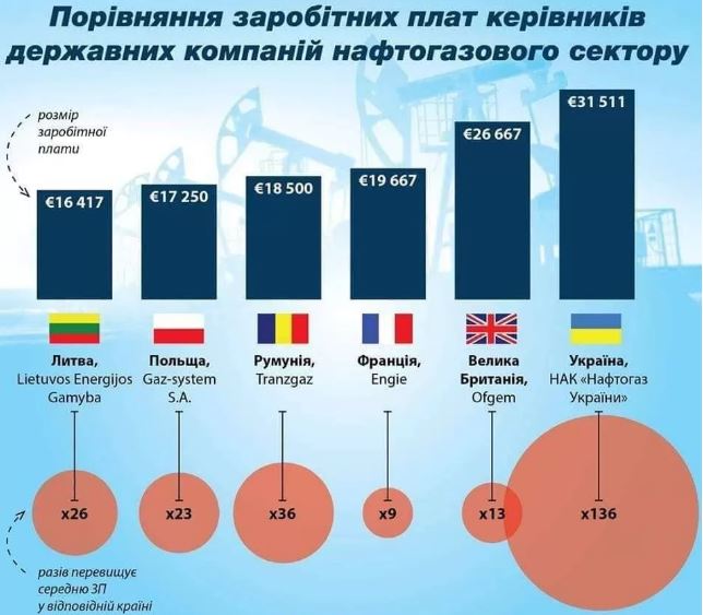 Вознаграждение председателя правления Национальной акционерной компании "Нафтогаз Украины" - наибольшее среди руководителей нефтегазовых компаний 5 стран-членов Организации экономического сотрудничества и развития.