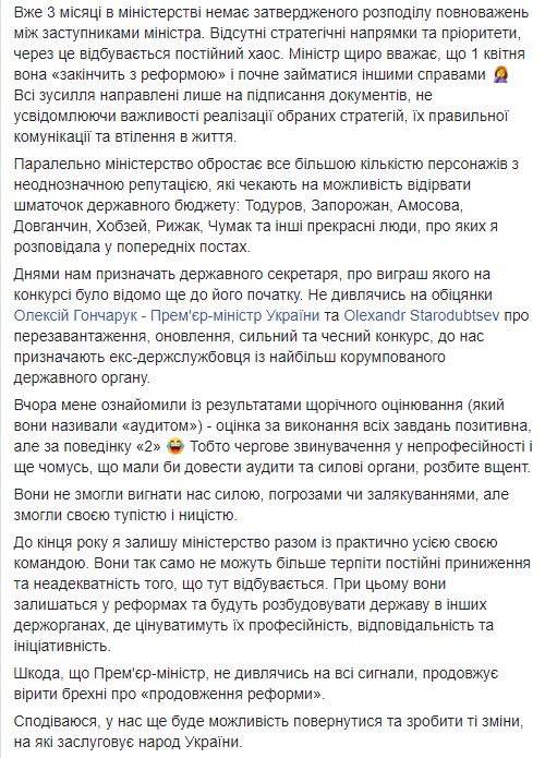 Напомним, что с этой же формулировкой о расхождении ценностей и отсутствии стратегического видения в новой политической команде заявление на увольнение написал глава Национальной службы здоровья Олег Петренко. Его отставку уже приняло правительство.