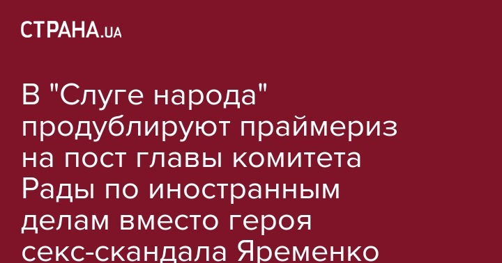 После вчерашнего провала голосования за кандидатуру Елизаветы Ясько на место главы парламентского Комитета по иностранным делам вместо попавшего в секс-скандал Богдана Яременко, фракция "Слуга народа" снова проведет праймериз кандидатов на эту должность и рассмотрит новый порядок избрания председателя комитета.