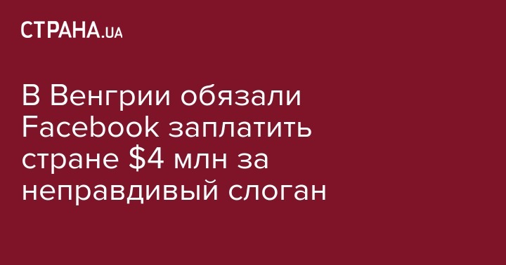 Венгерское агентство по вопросам конкуренции оштрафовал социальную сеть Facebook на 1,2 млрд форинтов (4 млн долларов) за свое заявление о том, что услуги соцсети являются бесплатными, чем якобы ввели в заблуждение пользователей.Об этом сообщает информационная служба Associated Press.