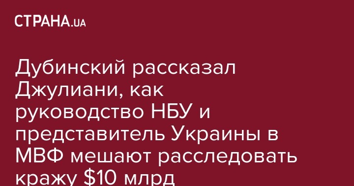 Дубинский сказал Джулиани о необходимости создать временную парламентскую следственную комиссию и раскрыть детали кражи из бюджета, выведение средств в офшоры и реинвестирование их обратно в интересах Порошенко и Януковича. Депутат сообщил, что до сих пор при власти остались люди, которые препятствуют этому расследованию.