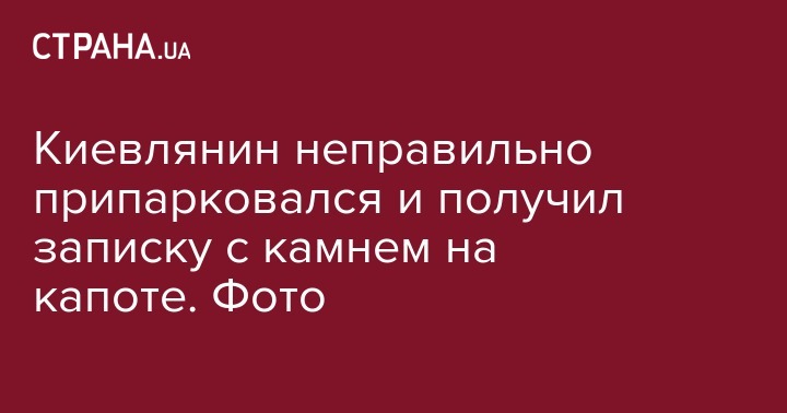Киевлянин неправильно припарковался и получил записку с камнем на капоте. Фото