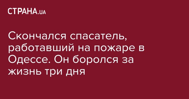 К сообщению ГСЧС присоединилась областная одесская полиция. "Сегодня в больнице от полученных во время тушения пожара травм скончался спасатель, 1976 г.р., госпитализированный 4 декабря", - указывается на сайте полиции.