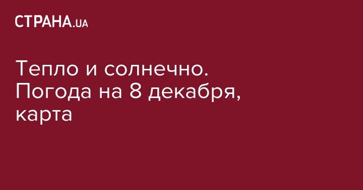 Погода 8 декабря в Украине будет относительно теплой. Практически по всей территории страны будет солнечно и без осадков, ожидаются небольшие морозы - до -3 ночью. Об этом сообщает "Укргидрометцентр".
