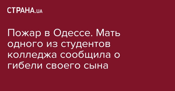 Пожар в Одессе. Мать одного из студентов колледжа сообщила о гибели своего сына