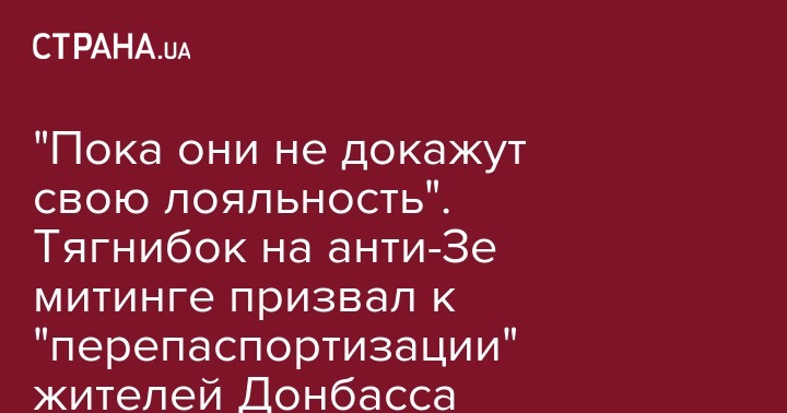 Олег Тягнибок националист и председатель партии ВО "Свобода" призвал к "перепаспортизации" жителей Донбасса "пока они не докажут свою лояльность".