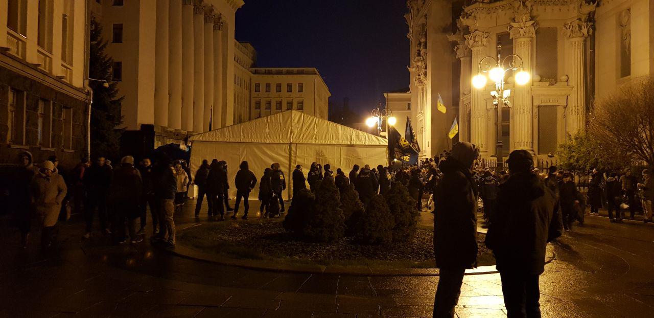 На улице Банковой под Офисом президента, где проходит акция протеста накануне нормандской встречи, Нацкорпус выстроил целый дом. Об этом сообщает корреспондент "Страны".