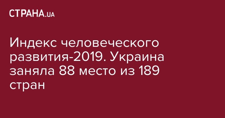 Индекс человеческого развития-2019. Украина заняла 88 место из 189 стран
