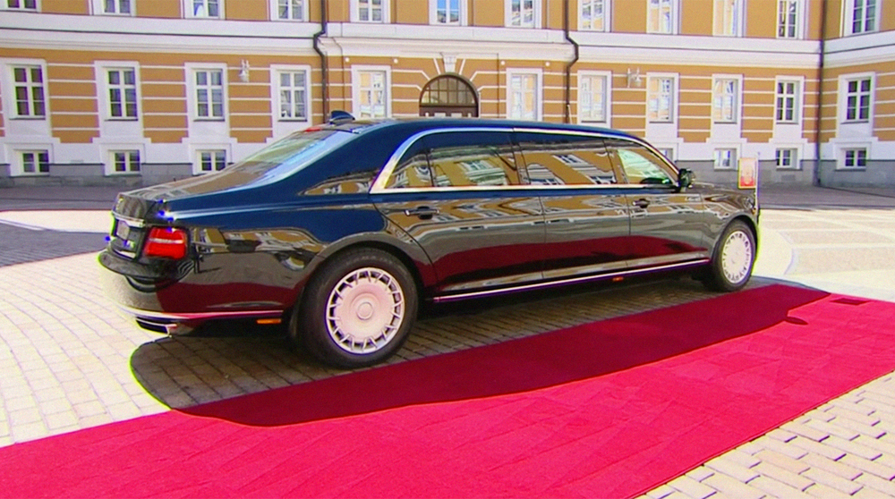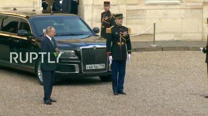 Президент России Владимир Путин приехал в Елисейский дворец в Париже на нормандскую встречу на российском лимузине Aurus, который, вероятно, был привезен прямиком из Москвы.