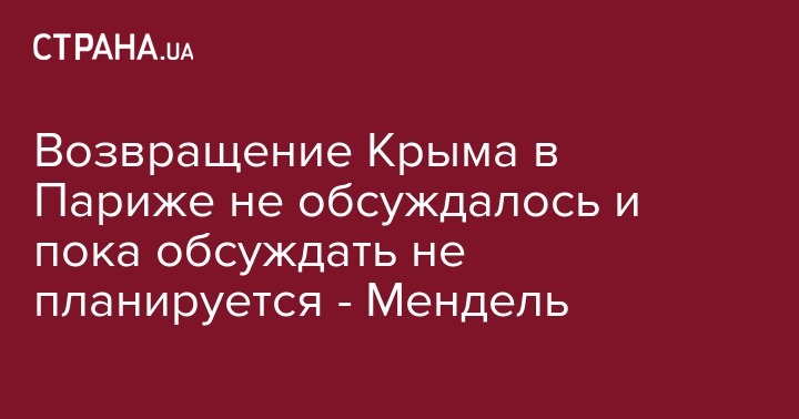 Пресс-секретарь президента Украины Владимира Зеленского Юлия Мендель положительно оценила результаты переговоров на "нормандском саммите" в Париже и сказала, что возвращение Крыма лидеры стран не обсуждали. Об этом сообщает ТАСС.