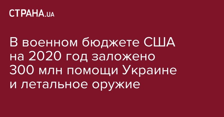 В военном бюджете США на 2020 год заложено 300 млн помощи Украине и летальное оружие
