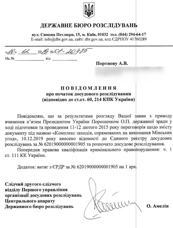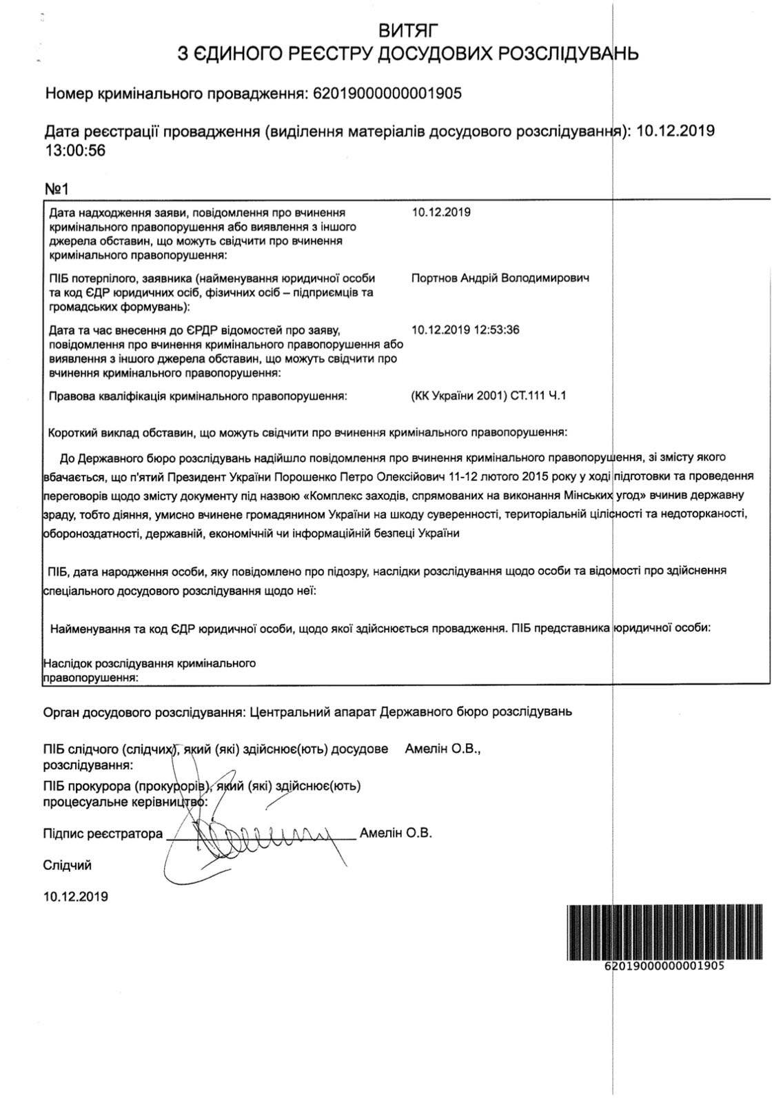 Мы уже рассказывали, что Портнов подал заявление в ГБР о совершении преступления Порощенко и приводили текст его заявления.