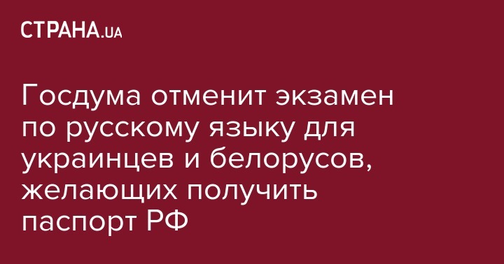 Комитет Госдумы по делам СНГ поддержал законопроект об отмене экзамена по русскому языку для граждан Украины и Беларуси, которые намереваются получить российский паспорт. Об этом сообщает издание "Деловая столица".