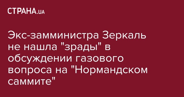 Экс-замминистра Зеркаль не нашла "зрады" в обсуждении газового вопроса на "Нормандском саммите"