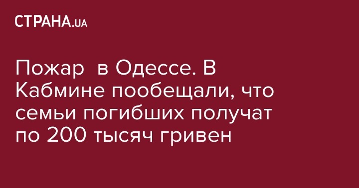 "Инициатива правительства предусматривает выделение по 200 тысяч гривен каждой из семей, чьи родные погибли во время пожара в Одесском колледже (экономики, права и гостинично-ресторанного бизнеса - Ред.), и по 50 тысяч гривен травмированным во время пожара", - говорится в опубликованном сообщении.
