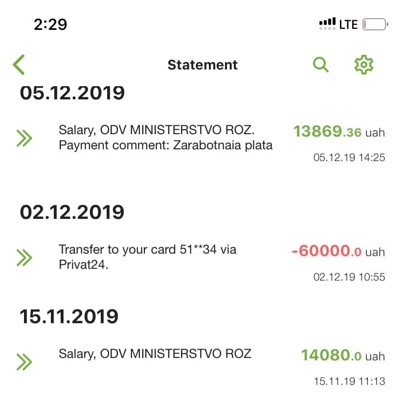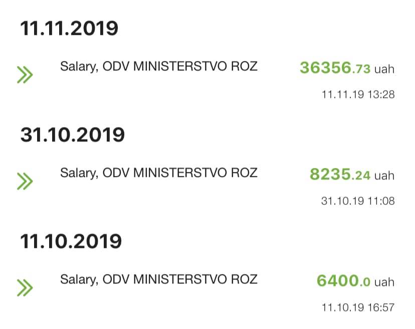 "Все выплаты - зарплаты и премии, которые я получил за 3 месяца работы в Министерстве. На фото. 93122 грн в целом, что составляет 31041 грн в месяц", - написал он, прикрепив соответствующие скриншоты.