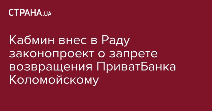 Кабинет министров Украины подал Верховной Раде законопроект №2571, которым запрещает возврат ПриватБанка его бывшему владельцу Игорю Коломойскому.