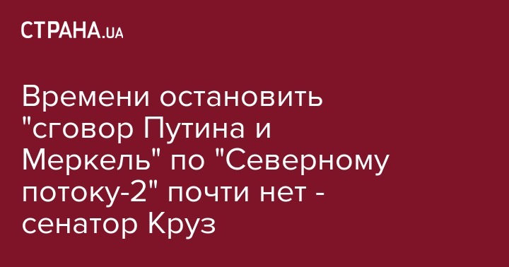 Американский сенатор от Республиканской партии, фронтмен борьбы против "Северного потока-2" Тед Круз заявил, что времени, чтобы остановить сговор президента России Владимира Путина и канцлера ФРГ Ангелы Меркель, почти не осталось. Запись с соответствующим обращением политик опубликовал в Twitter.